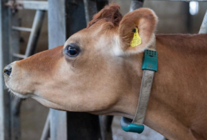 Each cow wears a device to help farmers monitor them, Picture: Rob Currie, JEP